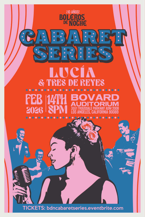 El sábado 14 de febrero de 2026, el histórico Bovard Auditorium del campus de USC acogerá la “Serie Cabaret” de Boleros de Noche. El evento contará con la participación de Tres De Reyes de Chicago y Lucía, ganadora del Concurso Internacional de Jazz Vocal Sarah Vaughan, quien presentará sus interpretaciones frescas y conmovedoras.