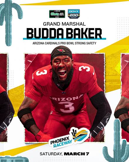 El Gran Mariscal de la GOVX 200 de este año será Budda Baker, safety de los Arizona Cardinals, ocho veces Pro Bowl y dos veces All-Pro del Primer Equipo. Con el honor de pronunciar las palabras más famosas del automovilismo, Baker estará presente para dar la orden en persona antes del inicio a las 5:00 p. m., hora de la Montaña (MST).