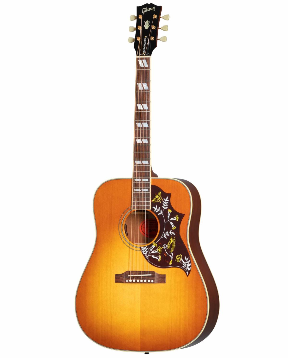 | Hummingbird Original, de Gibson Uno de los instrumentos acústicos más distintivos de GibsonLa inconfundible Hummingbird™, de Gibson, es seguida por las masas como una de las guitarras acústicas más notables fabricadas en toda la historia. La nueva Hummingbird Original combina detalles vintage con la construcción moderna y de alta calidad de la actualidad. Equipada con clavijas Gotoh Keystone doradas, ribetes envejecidos dobles, una cubierta de tensor tradicional Hummingbird y cejuela y silleta de hueso, está disponible en acabados Antique Natural y Heritage Cherry Sunburst. |