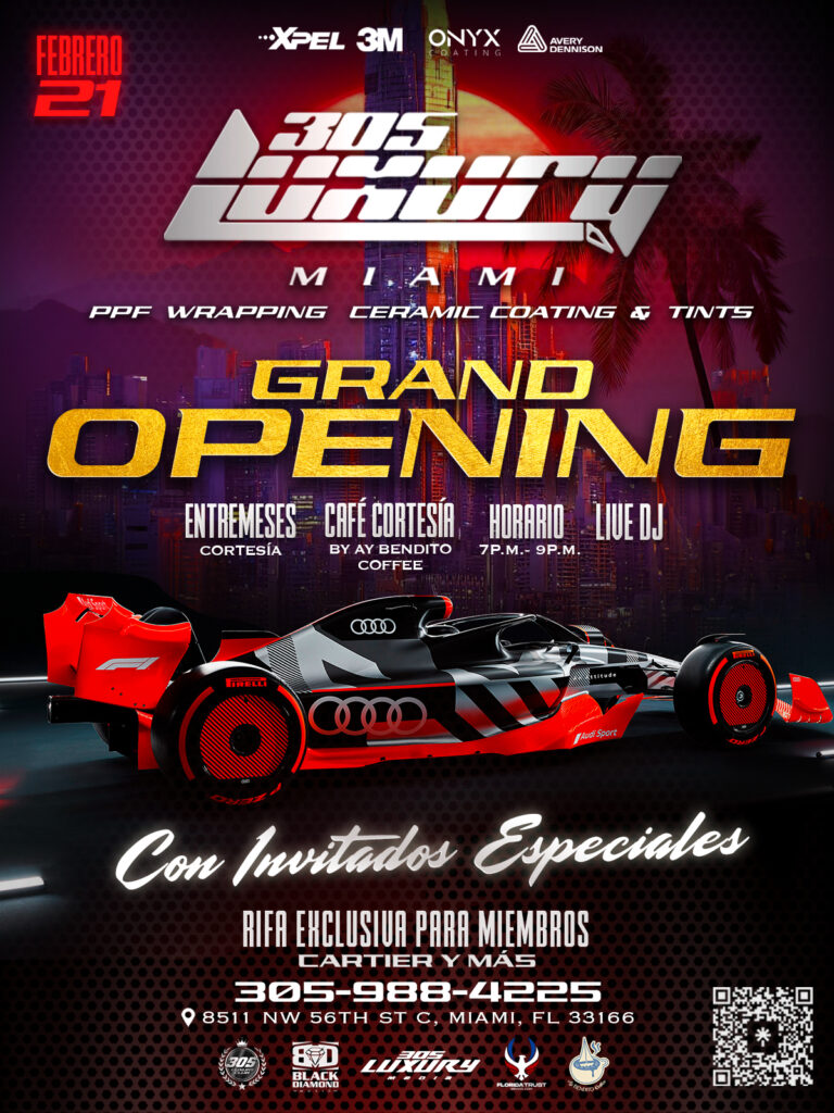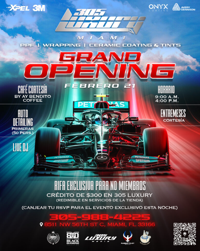 (Miami, Fl. febrero de 2026)- La ciudad recibe un nuevo referente en el mundo automotriz con la inauguración oficial de 305 Luxury Miami, un exclusivo club automotriz que redefine el concepto de cuidado y personalización de vehículos de alta gama. La celebración se llevará a cabo el sábado 21 de febrero,…
