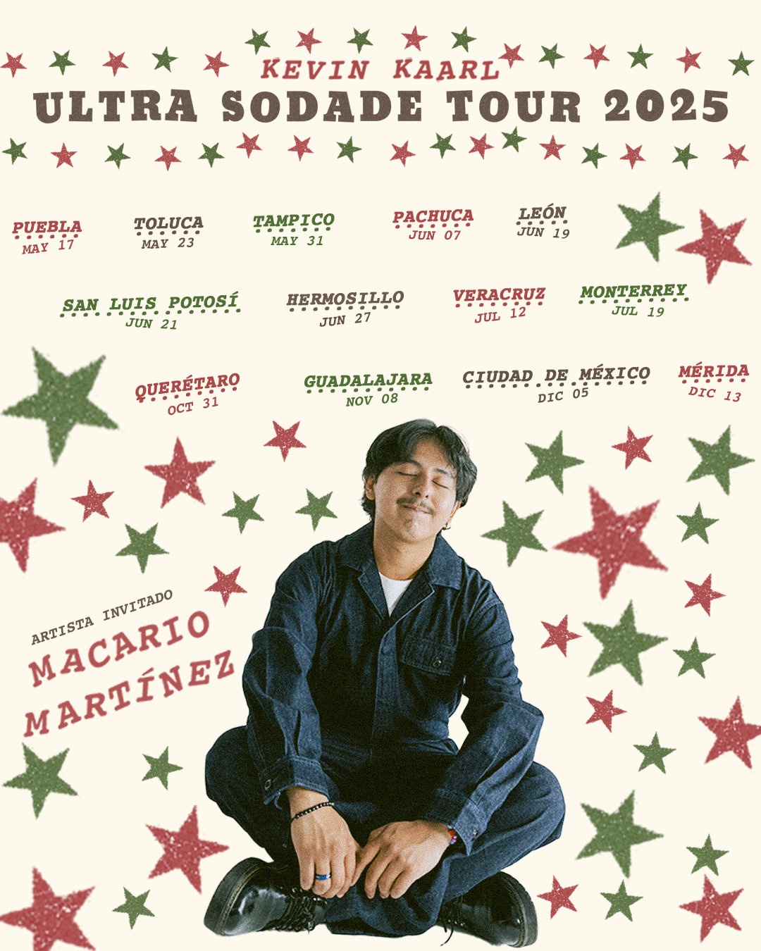 Además, el fenómeno viral Macario Martínez se une a la gira como acto de apertura en 13 fechas en México, comenzando el 17 de mayo en Puebla.