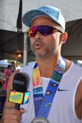 El fin de semana arrancó con la Tropical 5K, donde el olímpico venezolano Luis Orta consiguió su quinta victoria. Sin embargo, las ovaciones más fuertes fueron para Deco y Sasha, dos perros de búsqueda y rescate del Departamento de Bomberos de Miami Beach. Corrieron junto a sus cuidadores para concienciar sobre la salud mental en el cuerpo de bomberos, terminando la carrera, como muchos de sus compañeros humanos, exhaustos y descansando en el pavimento.
