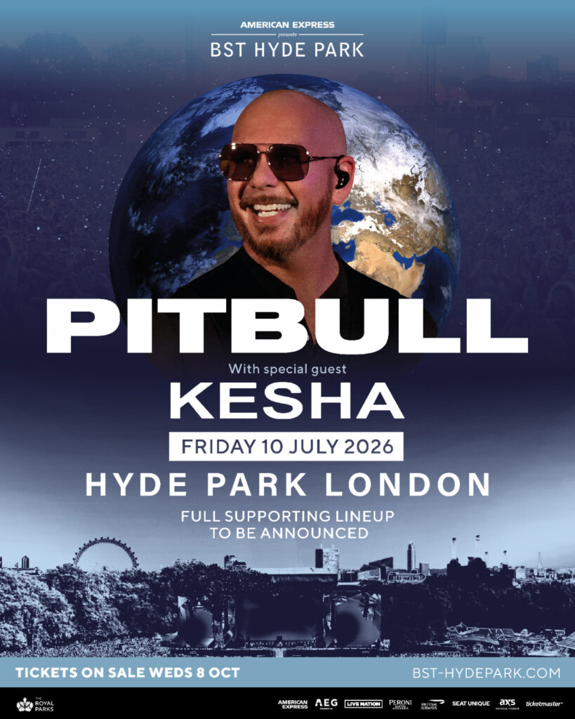 Pitbull también encabezará el inaugural Roundhay Festival presentado por American Express en Leeds el viernes 3 de julio, acompañado por Kesha y más artistas por confirmarse. Visita roundhayfestival.com.