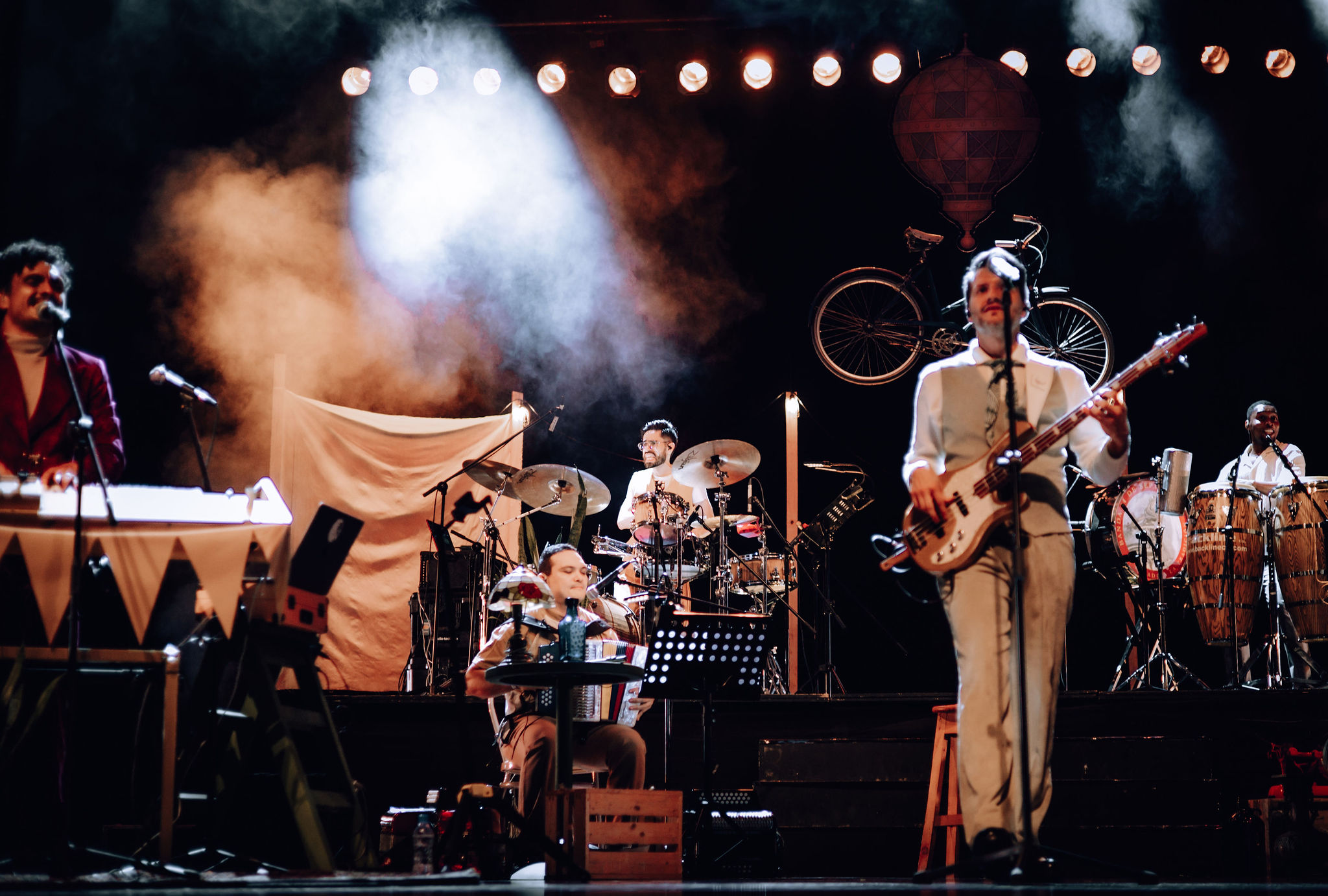 La propuesta reúne a 18 artistas en escena, entre músicos, narradores, actores y bailarines, que dan vida a una experiencia escénica única, con música en vivo interpretada por una orquesta ampliada de 11 músicos. El repertorio incluye canciones de sus 14 álbumes, desde Kolombian Jazz, Vuelta Canela, Cumbia Rebelde, Amor y Deudas hasta su más reciente trabajo Fiesta Candelaria.