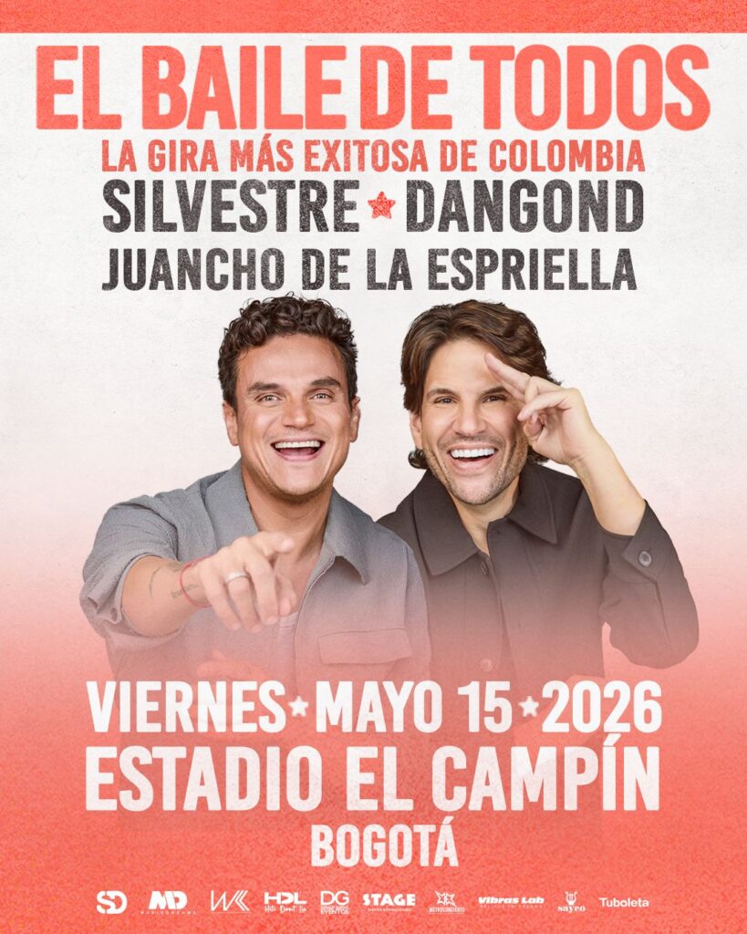 Con “El Baile De Todos”, Bogotá será el escenario de una gran celebración de la música latina, en la que miles de seguidores cantarán junto a Silvestre Dangond y Juancho de la Espriella, las canciones que han marcado una trayectoria extraordinaria y que hoy forman parte del corazón del público.