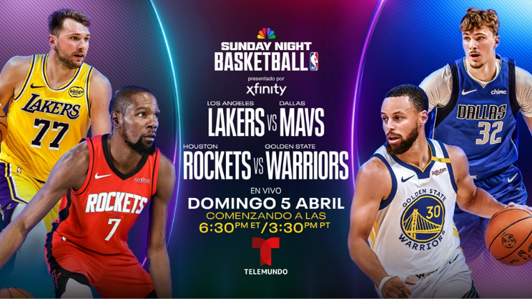 La noche continúa con otro duelo de Sunday Night Basketball, cuando los Houston Rockets se enfrentan a los Golden State Warriors a las 10 p.m. ET por Telemundo, con cobertura liderada por Adriana Monsalve, narración de José Francisco Rivera y análisis de Verónica Rodríguez.