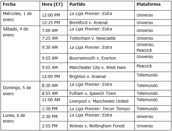 TELEMUNDO TRANSMITE OCHO PARTIDOS DE LA LIGA PREMIER EN CELEBRACIÓN DEL AÑO NUEVO POR TELEMUNDO, UNIVERSO Y PEACOCK